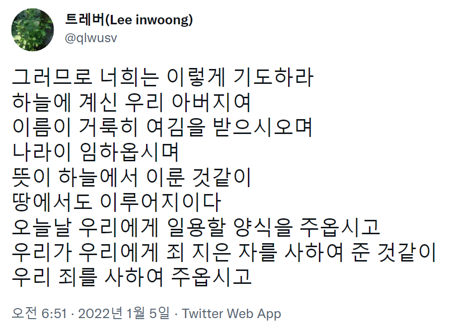 [우리말 성경] 마태복음 6:9~13 - 주기도문 -