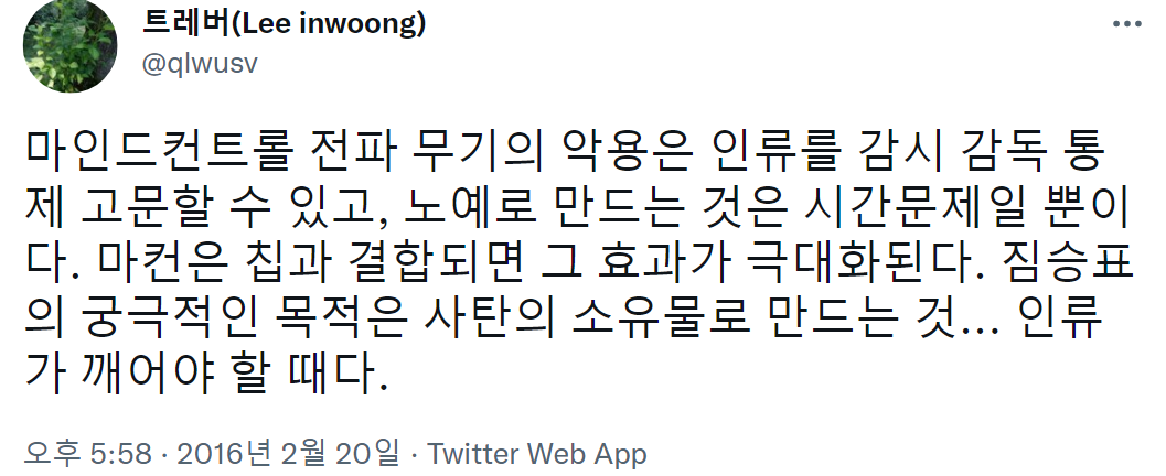 마인드컨트롤 기술은 지구상의 대중들에게 인류 역사상 가장 큰 범죄가 될 것이다