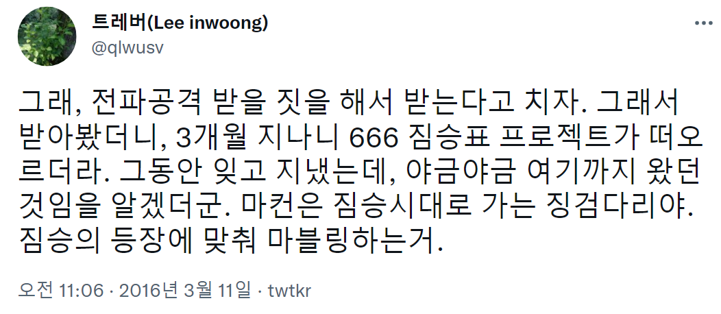 | 마컨피해 트윗단상(지난날의 기록들 : 2013년) (0) | 2022.01.14 |