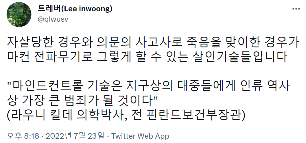 뇌출혈, 심장마비에 의한 사망이 마컨 전파무기로