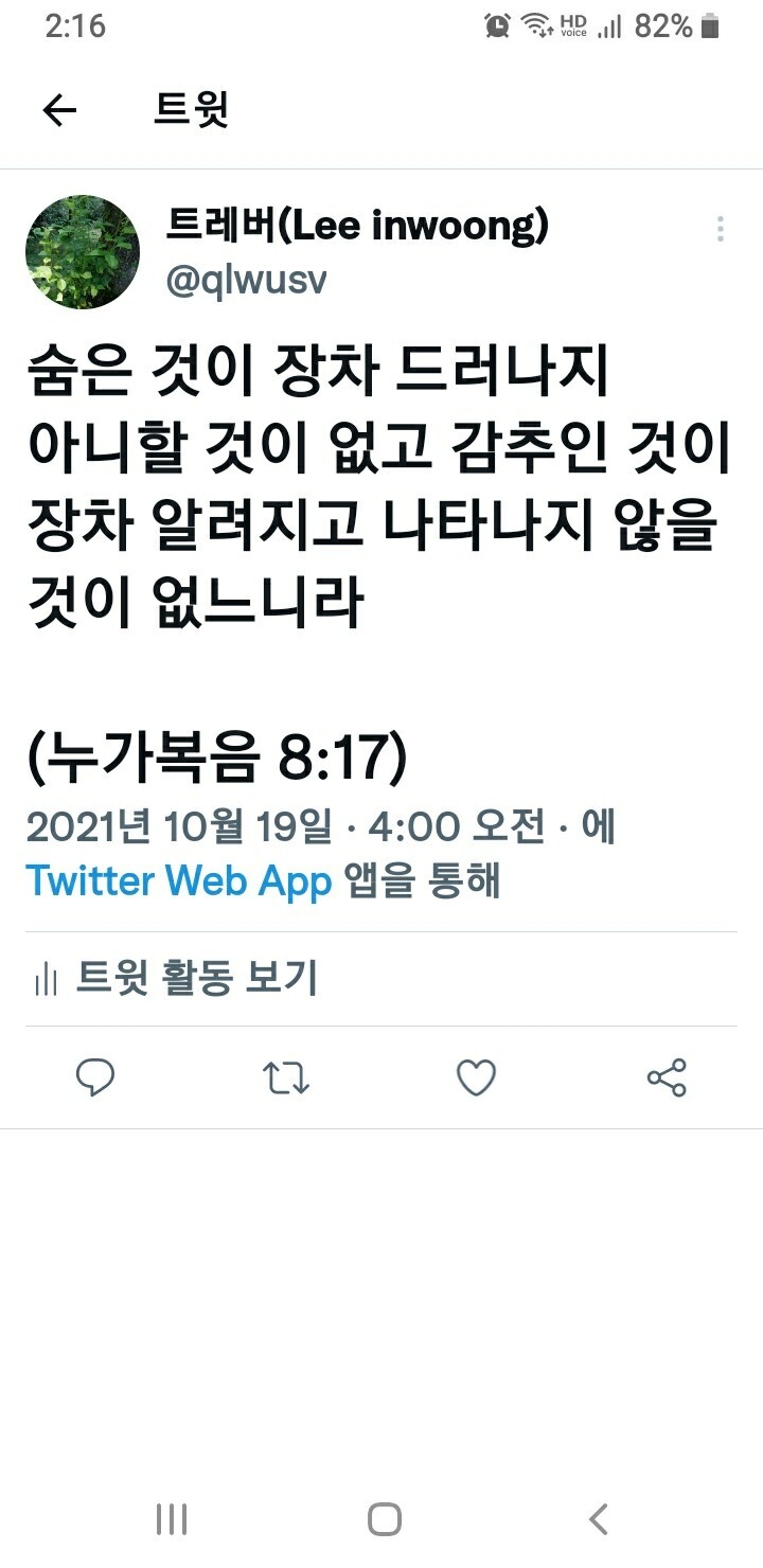 트위터 말씀 단상(잠언11장, 눅8장 에서)