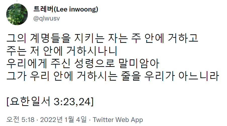 하나님의 명령을 지키는 사람은 하나님 안에서 살게 되고,
